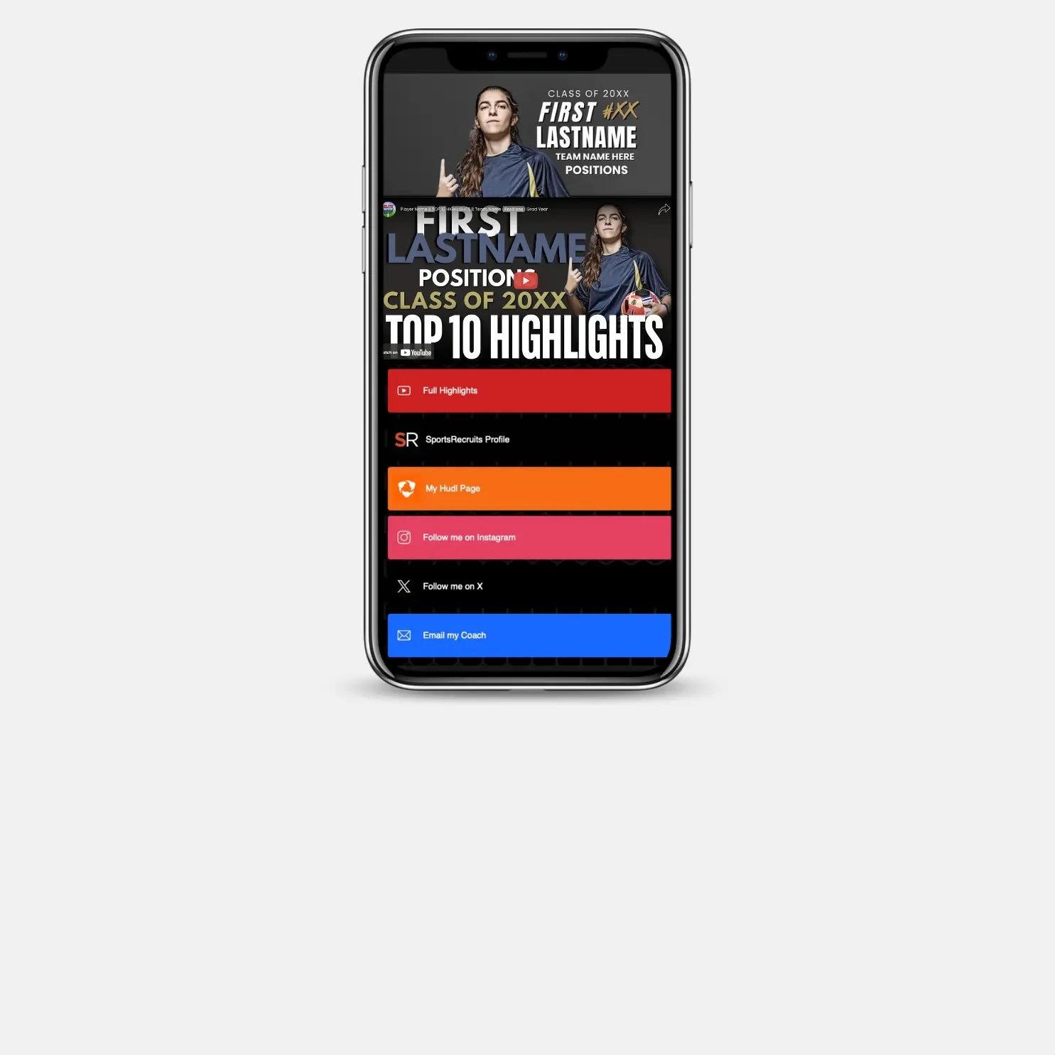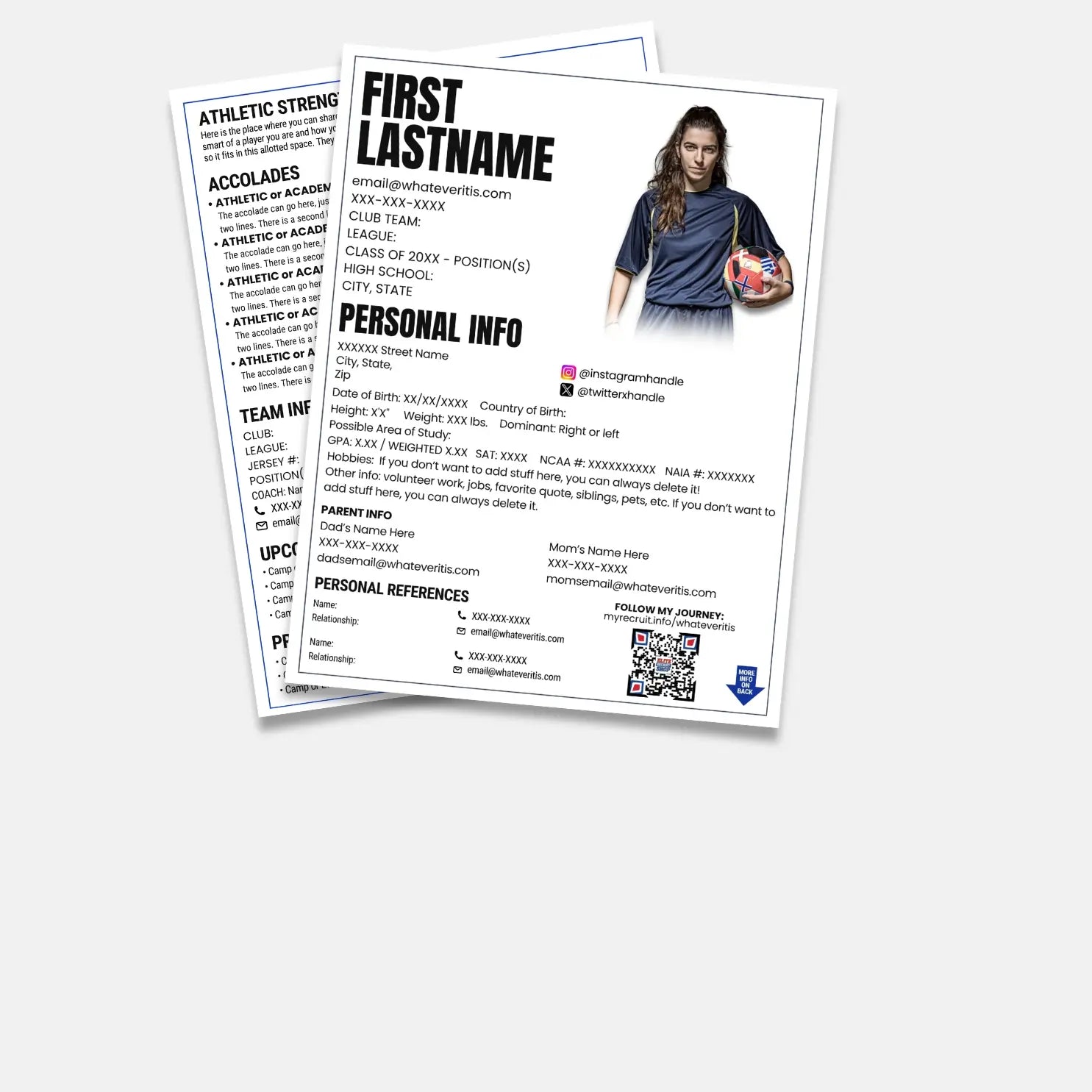 âą Include your Link Page QR code so coaches can access your info instantly (sold separately)