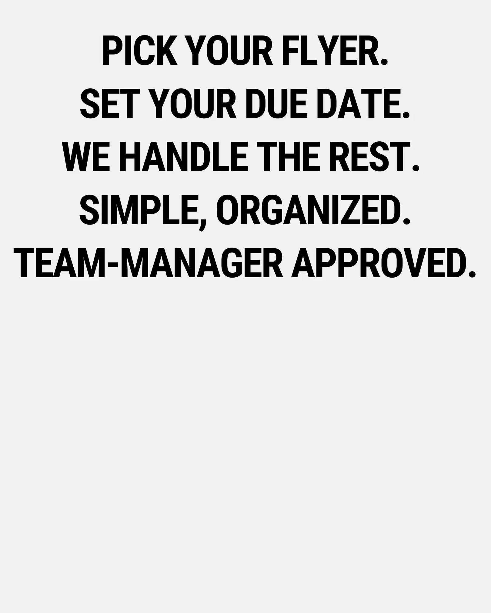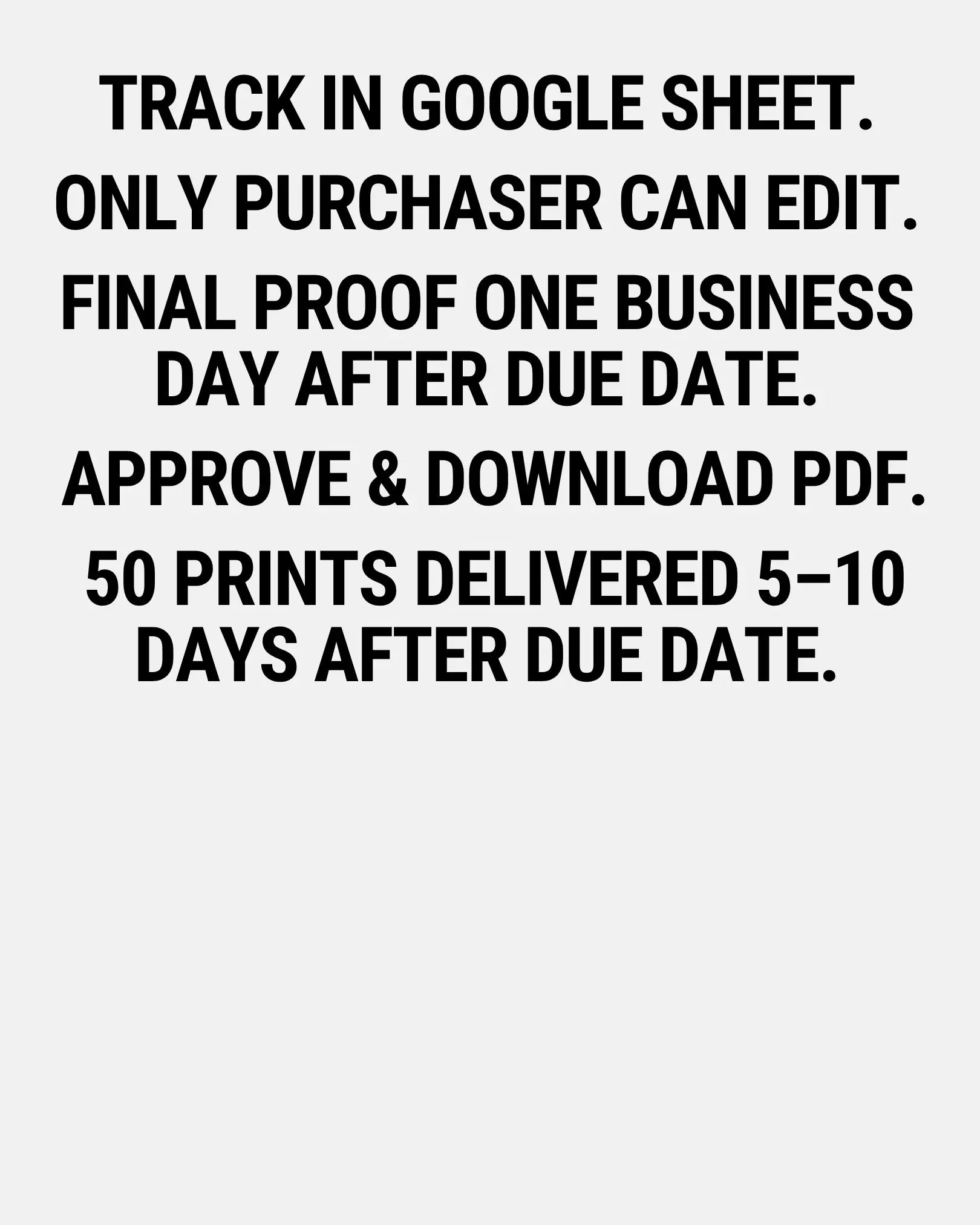 Track who’s submitted their info using your team's Google Sheet, only the purchaser will have edit access, so you are able to make any edits, if needed. Within 24 hours after your team’s form deadline, we’ll create your flyer and send you a proof to review. Once approved, we’ll move it to production and email you a high-resolution PDF that you can print on your own right away. We will also send your order to our professional printer, and within 5–10 days, you’ll receive 50 premium printed flyers to use at your next event!