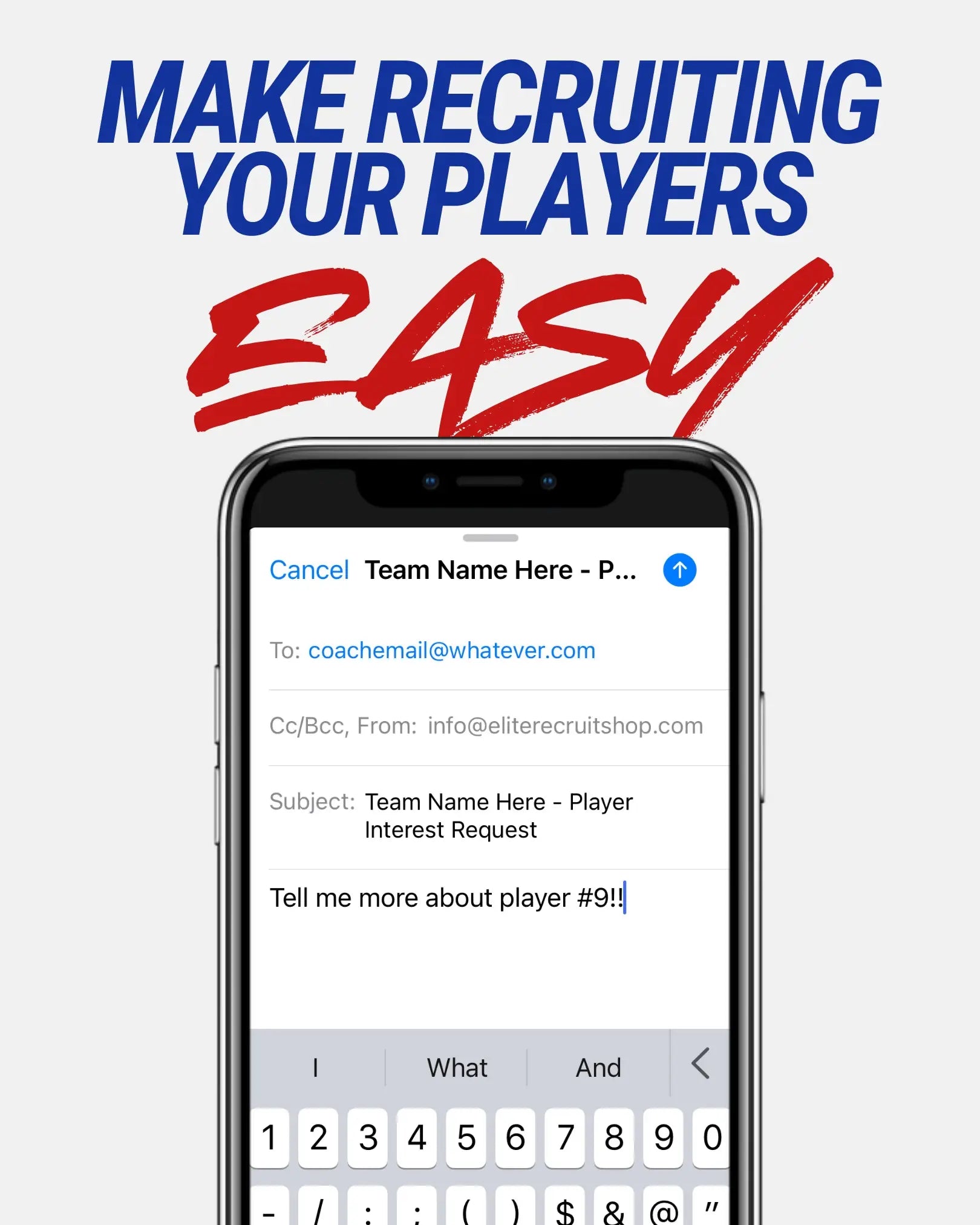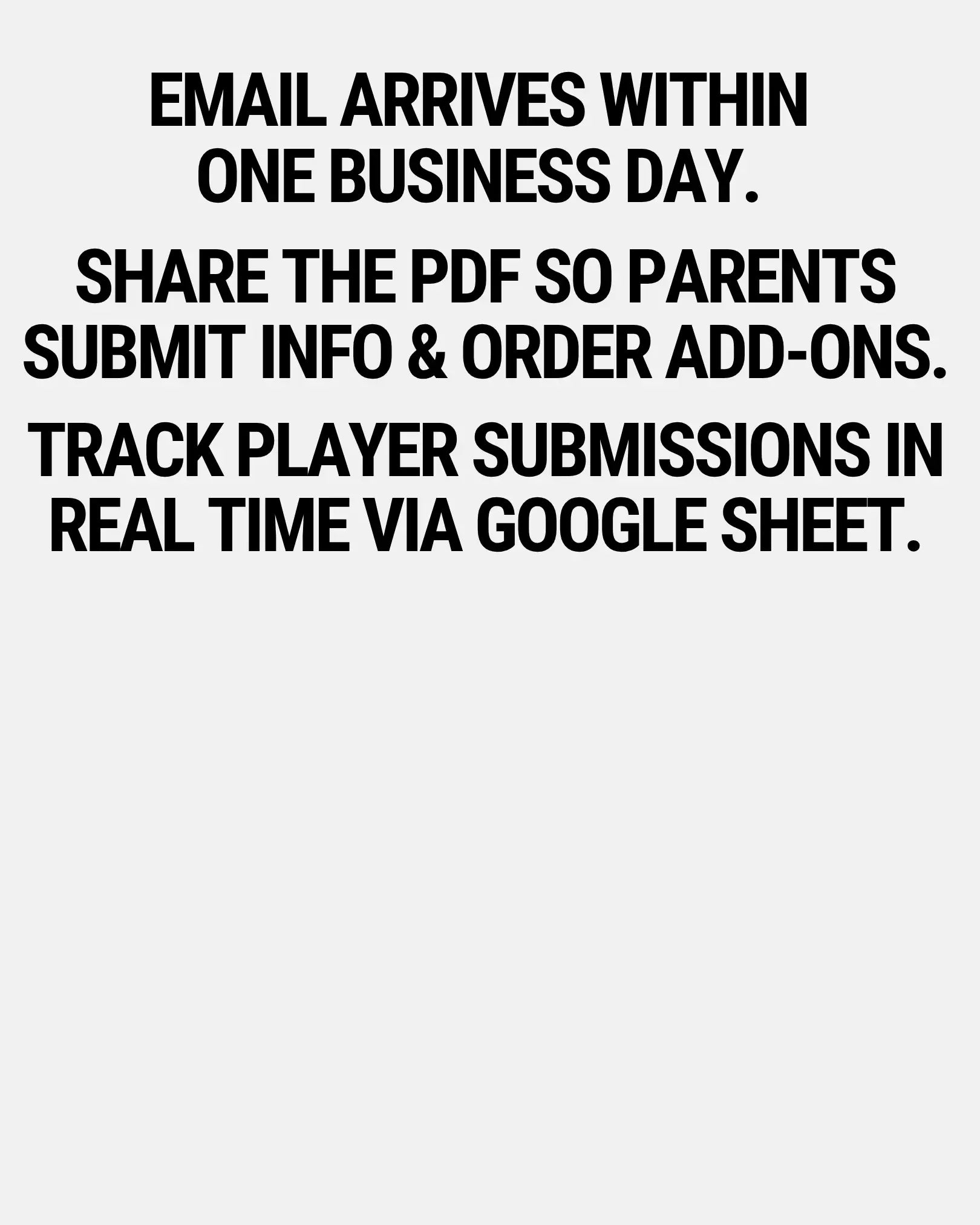 Within 24 hours of your order, you’ll receive an email with everything you need to get started, including a clickable PDF you can share with parents that explains the process and directs them where they can submit their player’s info and purchase any additional recruiting products.