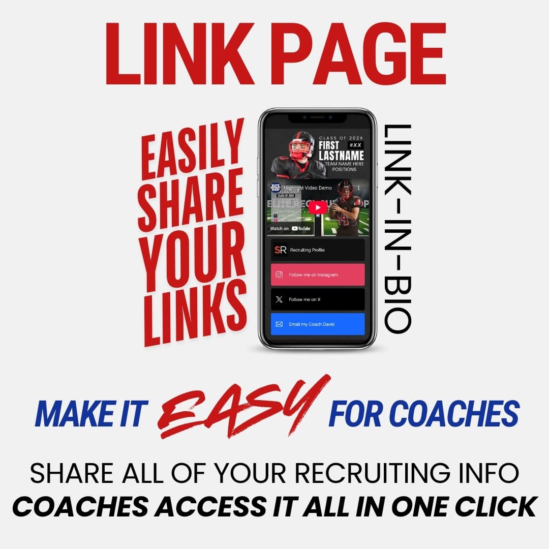- Player sections with: Name, #, email, positions, grad year/GPA, phone number, photo headshot & custom QR code with the option to upgrade to our player Link Page
